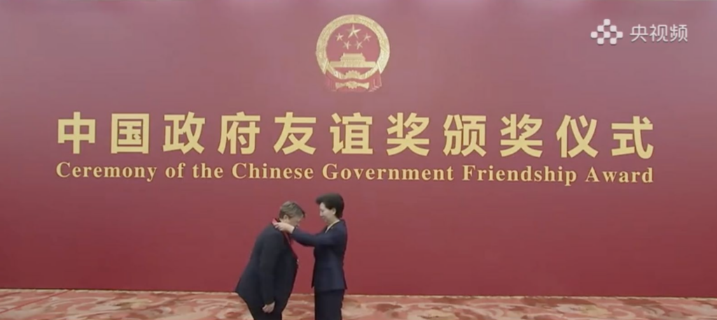 Established in 1991, the Chinese Government Friendship Award is the Chinese government’s highest honor bestowed on foreign experts. It is presented to commend foreign experts who have made outstanding achievements and contributions to China’s social development, economic, technological, educational, cultural endeavors, and talent cultivation. Chinese State Councilor Shen Yiqin presented the Award.
